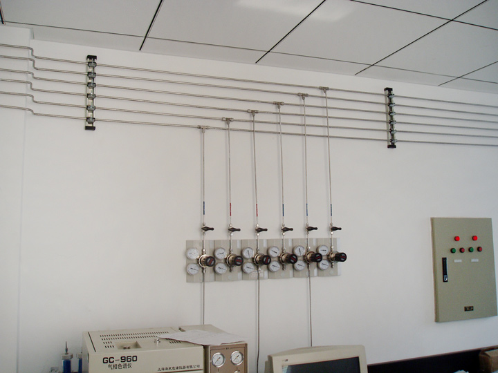 在現代化的實驗室中,為了完成實驗,需要用到多種分析儀器,如氣相色譜儀,原子吸收,原子熒光,氣—質聯用儀,ICP等等,其中這些儀器需要用到高純氣體,傳統的做法是采用單獨鋼瓶分散供氣的模式,這種供氣模式每臺儀器設備單獨配置氣體鋼瓶,分別符合每臺儀器設備的使用,但隨著近年來實驗室投資的不斷增加,儀器設備的很快增加,用氣量也逐年增加,傳統的供氣模式已經不好達到儀器設備增加的需求,同時分散供氣模式帶來的實驗室布局混亂,鋼瓶的頻繁替換也對實驗室的管理和維護造成了困難,為了解決以上兩個方面的問題,就需要一套安全性高且能實現集中分配供氣的系統完成從氣源向儀器的供氣,這就是實驗室高純氣體管道系統的功能所在。