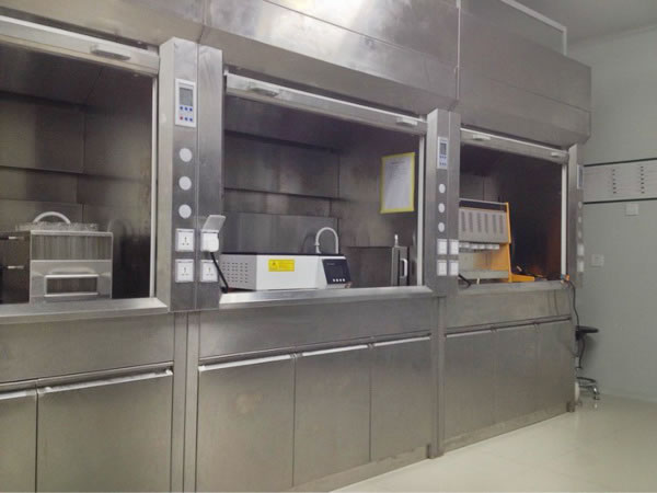 (1)內(nèi)襯板、導(dǎo)流板:采用厚度1.2mm不銹鋼鋼板制作,分層(上、中、下),并使柜內(nèi)無排風(fēng)死角,各種比重氣體均能順利排出柜外,三塊導(dǎo)流板使處于不同高度空間有害氣體以控制濃度小于0.5ML/M3的性能指標分別從不同段區(qū)排出,操作口表面風(fēng)速0.3-0.5M/S的速度將通風(fēng)柜中氣體排出,確無任何殘留氣體存在。排風(fēng)量1000-1600M3/N,噪聲要小。